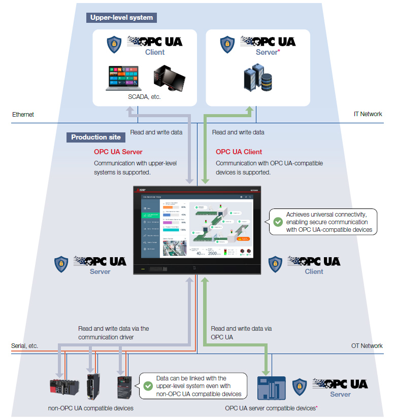 - *Only one OPC UA server can be connected to a single GOT. Multi-device connections are planned for future support.
